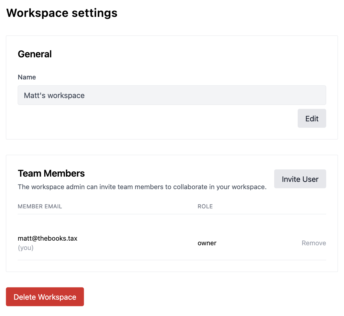 Load the workspace settings page to rename your workspace, invite members, or remove members.